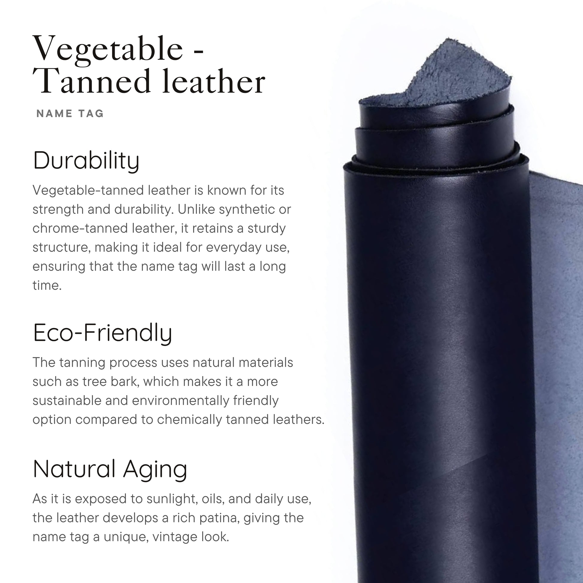 Crafted from eco-friendly vegetable-tanned leather, this leather tag brings together quiet elegance and thoughtful design. Tanned with plant-based ingredients, it’s completely non-toxic, sustainable, and gentle on your pet’s skin.